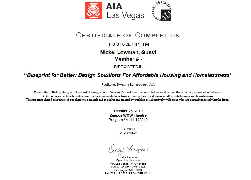Las Vegas based SCA Design architectural firm has been collaborating with other architectural firms and professionals in the area to come up with solutions. The American Institute of Architects (AIA LV) has been focusing on the Blue Print for Better throughout the year. In August there was a day long design charrette called the “Blue Print for Better” where we looked at challenges and possible design solutions for affordability and homelessness. Below is the AIA recording of proposed solutions: