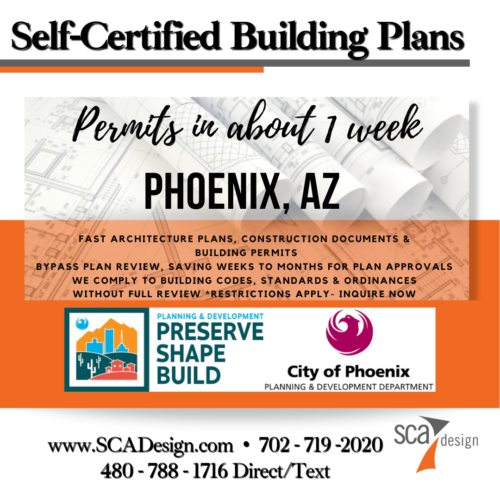The self-certification program allows registered professionals, like local Scottsdale Architect Sheldon Colen, to bypass traditional plan reviews by certifying their projects’ adherence to building codes, standards, and ordinances. Depending on the project’s scope, permits can be issued within one to five business days. Successful completion of self-certification training from the Planning & Development Department is required. The training reinforces that the participant is fully responsible for all aspects of a self-certification project including the plan review and compliance with the Phoenix Building construction code. The professional must also be registered in Arizona for at least three years.